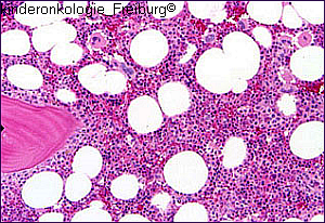Bei Untersuchung des Knochenmarks durch ein Mikroskop zeigt sich ein so genanntes „leeres“ Knochenmark. Das bedeutet, dass die blutbildenden Zellen, die bei Gesunden im Knochenmark zu finden sind, fehlen und zum Teil durch Fettzellen ersetzt sind.